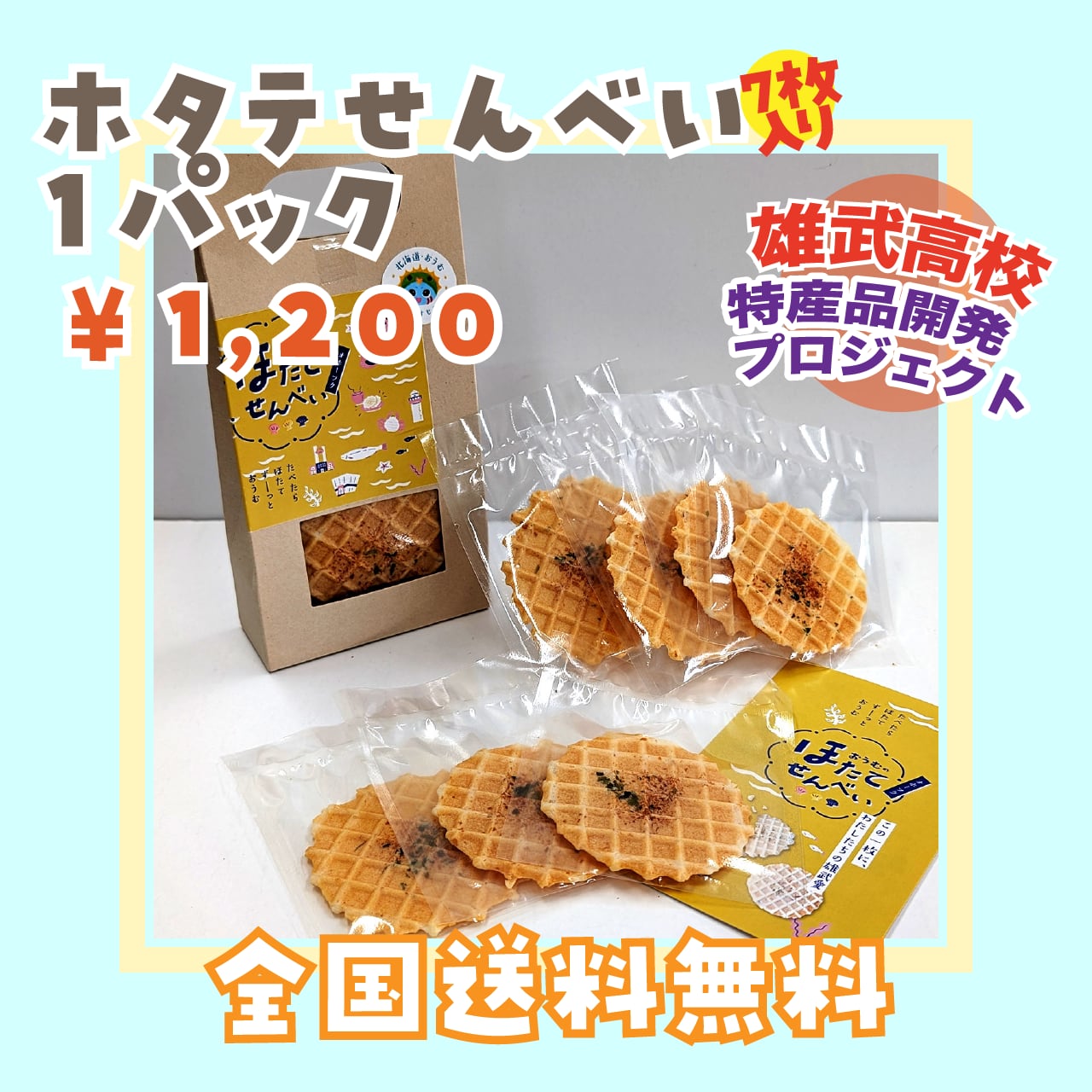 雄武高校プロジェクト商品「ホタテせんべい」を